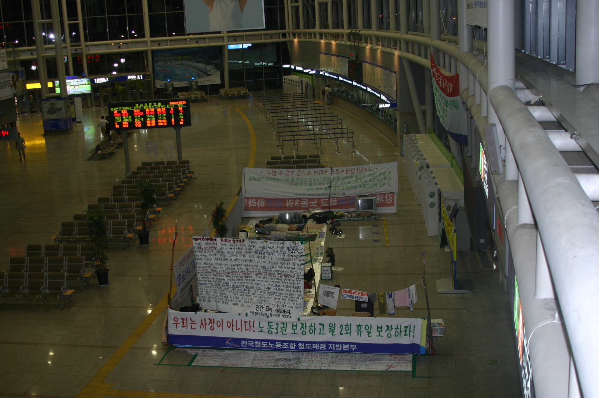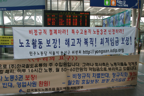 2005년 파업과 단식농성을 전개하던 시기에도 철도매점 노동자들은 1년 365일 단 하루의 휴일도 없이 하루 평균 16시간 이상 근무와 불규칙 장시간 노동에 시달리고 있었다. 이들은 급여명세서가 아니라 월 매출액에 별도로 정해진 용역비 지급률을 적용한 금액의 ‘용역비 명세서’를 받았다. 금액은 월 50만 원 수준으로 법정최저임금에도 크게 못 미쳤다. 또한 개인사업자로 분류되어 근로기준법상 휴일, 휴가와 4대보험도 적용받지 못했다.