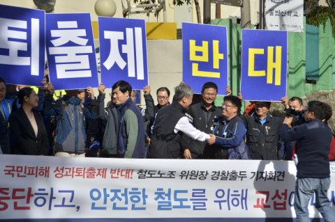 철도노조는 3월 8일 정기대의원대회를 열어 성과연봉제·퇴출제 폐기 총파업을 결의하고 관련 교섭권을 공공운수노조에 위임하고 ‘철도노동자 불복종 선언’ 조합원 서명운동을 시작했다. 공공운수노조에 성과연봉제에 대한 교섭권을 위임하여 공공기관 공동투쟁 지침을 중심으로 성과연봉제·퇴출제 현장교육과 선전전을 진행했다. 4월 30일에는 서울역 광장에서 조합원 5천여 명이 참가한 가운데 ‘노사 합의 이행·청년 일자리 확대·쉬운 해고 저지 철도노동자 1차 총력결의대회’를 개최했다. 성과연봉제·퇴출제에 맞서 공기업노조 중 처음으로 연 집회였다. 여기서 노조는 전년 임금피크제 합의인 인력충원에 노사 합의 이행을 촉구하였다. 이어 9월 10일 서울역 광장에서 조합원 5천여 명이 모인 가운데 철도노동자 결의대회를 열고 “노사 합의 없이 일방적으로 변경한 취업규칙을 9월 26일까지 원상 회복하라”며 “불법적인 이사회 결의를 무효화하지 않으면 27일 오전 9시를 기해 총파업에 돌입하겠다”고 선언했다. 노조는 이날 ‘투쟁명령 1호’를 발표해 △ 12일부터 파업 조 구성 △ 19일부터 휴일근로 거부, 직종별 준법투쟁 △ 21일부터 지부별 야간총회 개최 등을 밝혔다.