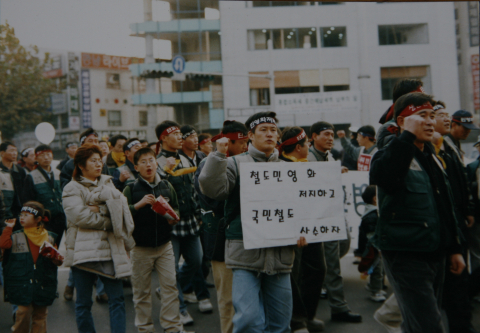 1997년 IMF 위기 후 출범한 김대중 정부는 신자유주의 구조조정 정책을 강하게 펼쳐나갔다. 정부가 사용자인 공공부문에서 구조 개악이 실행되어 포항제철, 한국통신, 담배인삼공사 등 주요 공기업이 민영화되었으며 교통, 가스, 전력 등의 민영화가 연이어 추진되었다. 2001년 1월 20일 김대중 대통령은 건설교통부 업무보고 회의에서 철도청 운영 적자를 명분으로 “어느 나라에도 철도가 국영화된 나라는 없다”며 철도구조개혁법을 마련해 연내 반드시 철도 민영화를 이루라고 지시한다. 그해 2월 건교부는 철도산업구조개혁기본법안을 입법 예고했고 8월에는 건설교통부, 기획예산처, 행정자치부의 의견을 종합하여 최종 기본법안을 발표하였다. 12월 4일에는 정례국무회의를 열어 철도 민영화 관련 법안을 의결해 국회에 제출했다. 법안은 ‘철도산업발전 및 구조개혁에 관한 법률안’과 ‘한국철도시설공단법안’으로 기존의 철도청과 고속철도공단을 해체 통합, 철도시설의 건설과 자산관리는 2003년 7월 발족하는 철도시설공단이 맡고, 운영은 2003년 7월 전액 정부출자로 철도운영회사를 만들어 넘긴 뒤 단계적으로 주식매각을 통해 완전 민영화한다는 내용을 담았다.