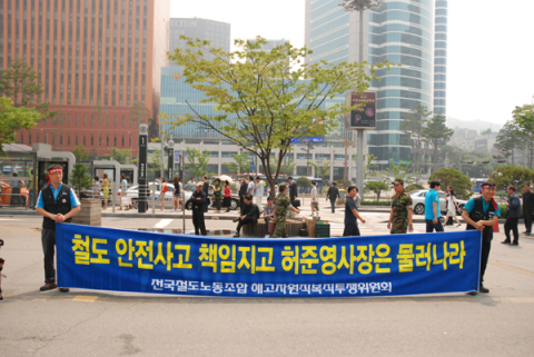 • 철도노조 오송고속철도전기지부장이 5월 17일부터 시작한 대국민선전전을 이어가며 과잉징계 철회를 요구하며 철도공사 대전본사 앞에서 단식농성에 들어감.