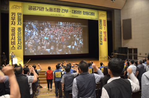 • 공공운수노조가 과천시민회관에서 100여 개 공공기관 지부 간부 800여 명이 참여한 가운데 합동대의원대회를 열고 “공공기관 가짜 정상화와 성과연봉제와 임금피크제 저지를 위해 8월 경고파업과 10월 공동파업”을 결의함. 철도노조는 80여 명의 간부, 대의원들이 참석함.