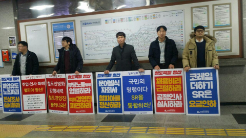 • 철도노조가 정부세종청사 국토부 앞에서 철도 파업, SR 분리, KTX 승무원 재판 조작 규탄 결의대회를 개최함.