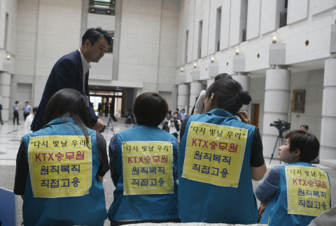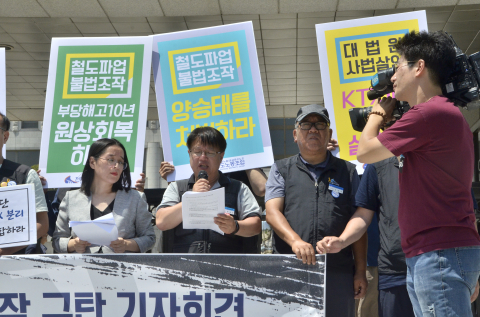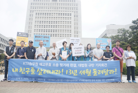 KTX 해고승무원들과 대책위도 규탄 기자회견, 대법원 로비 농성을 통해 재판 조작에 항의하고 해고승무원들의 복직을 촉구하는 투쟁을 재개했다.