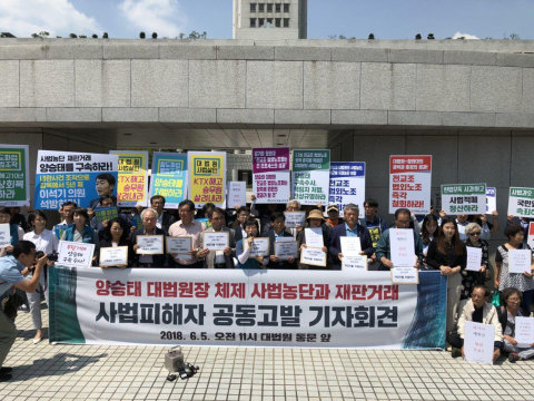 • 철도노조가 대법원 앞에서 민주사회를 위한 변호사모임(민변)과 함께 ‘사법 농단과 재판거래 사법 피해자 공동 고소·고발 기자회견’을 열고 양 전 대법원장을 직권남용과 공무상 비밀누설, 공용서류 무효, 증거인멸 등 혐의로 서울중앙지검에 고발함.