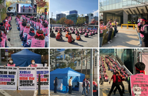 11월 9일 간부 파업에 들어간 두 지부는 마침내 11월 11일 전조합원 총파업에 돌입하였다. 파업 첫날인 11일 13시 대전역동광장에서 1,000여 명의 파업 대오가 참석한 가운데 ‘코레일 자회사 비정규직 총파업 출정식’을 개최하고 △ 인건비 내 4.3% 인상 △ 시중노임단가 100%에 따른 예산 확보된 금액 일시금 지급 △ 시중노임단가 100% 적용(2021년 7월부터) △ 정년 노사합의 이행을 요구했다.
