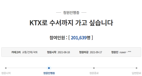 ‘KTX로 수서까지 가고 싶습니다’ 20만 국민청원운동은 한 달 안에 청와대 홈페이지 동의 서명이 완료되어야 했다. 철도노조는 청원 성사를 위해 기획팀을 구성하고 지방본부, 지부별 주단위 청원운동 계획과 정기보고 계획을 세워 ‘조합원 1인당 10인 조직’ 등 구체적 행동지침을 정해 8월 19일부터 본격적인 서명운동에 돌입했다.